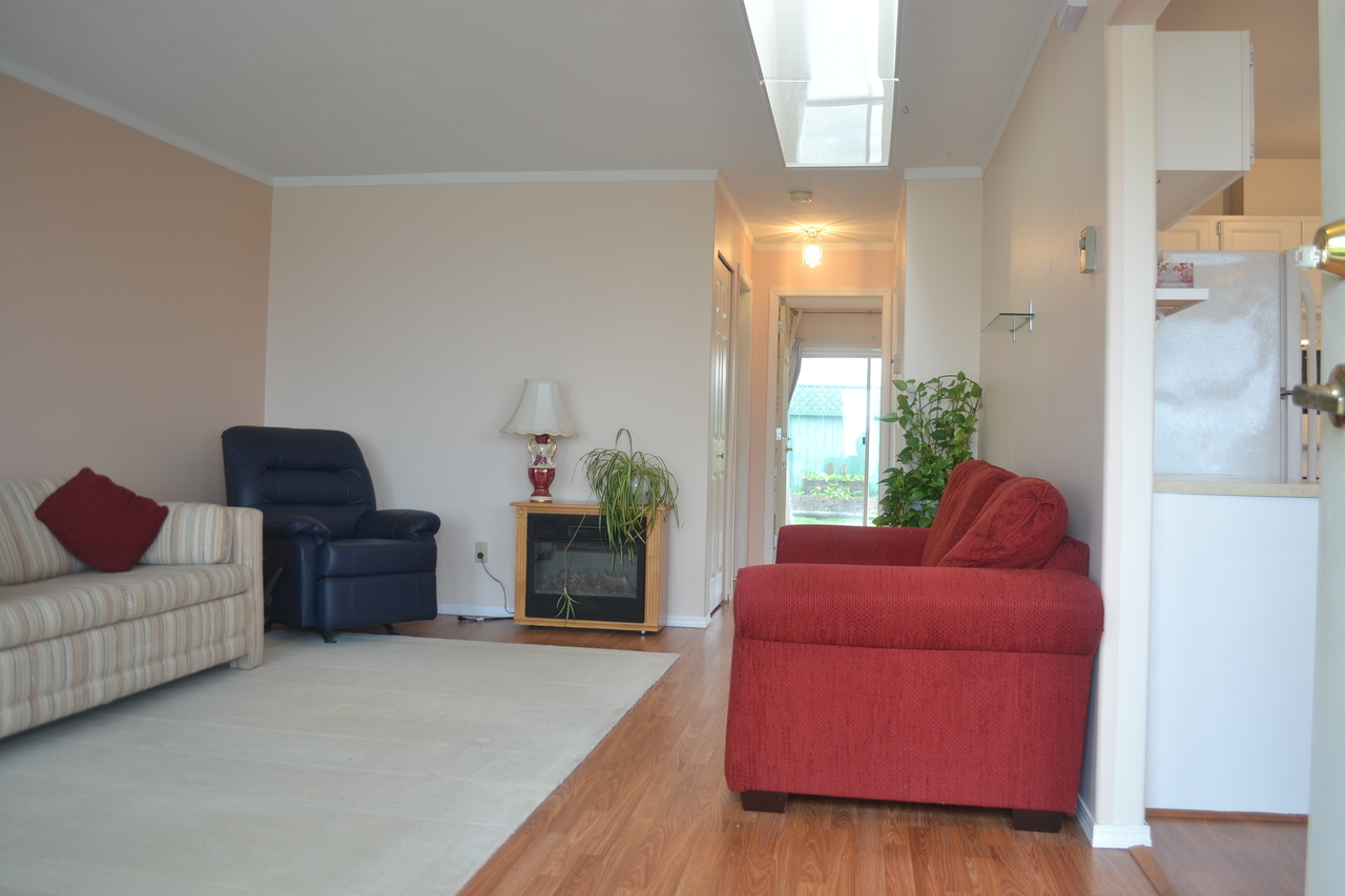 Great complex of well maintained townhomes. Low strata fees. Walk to amenities. This 1 bedroom and den is an end unit and features a small private garden. 55+ complex.
