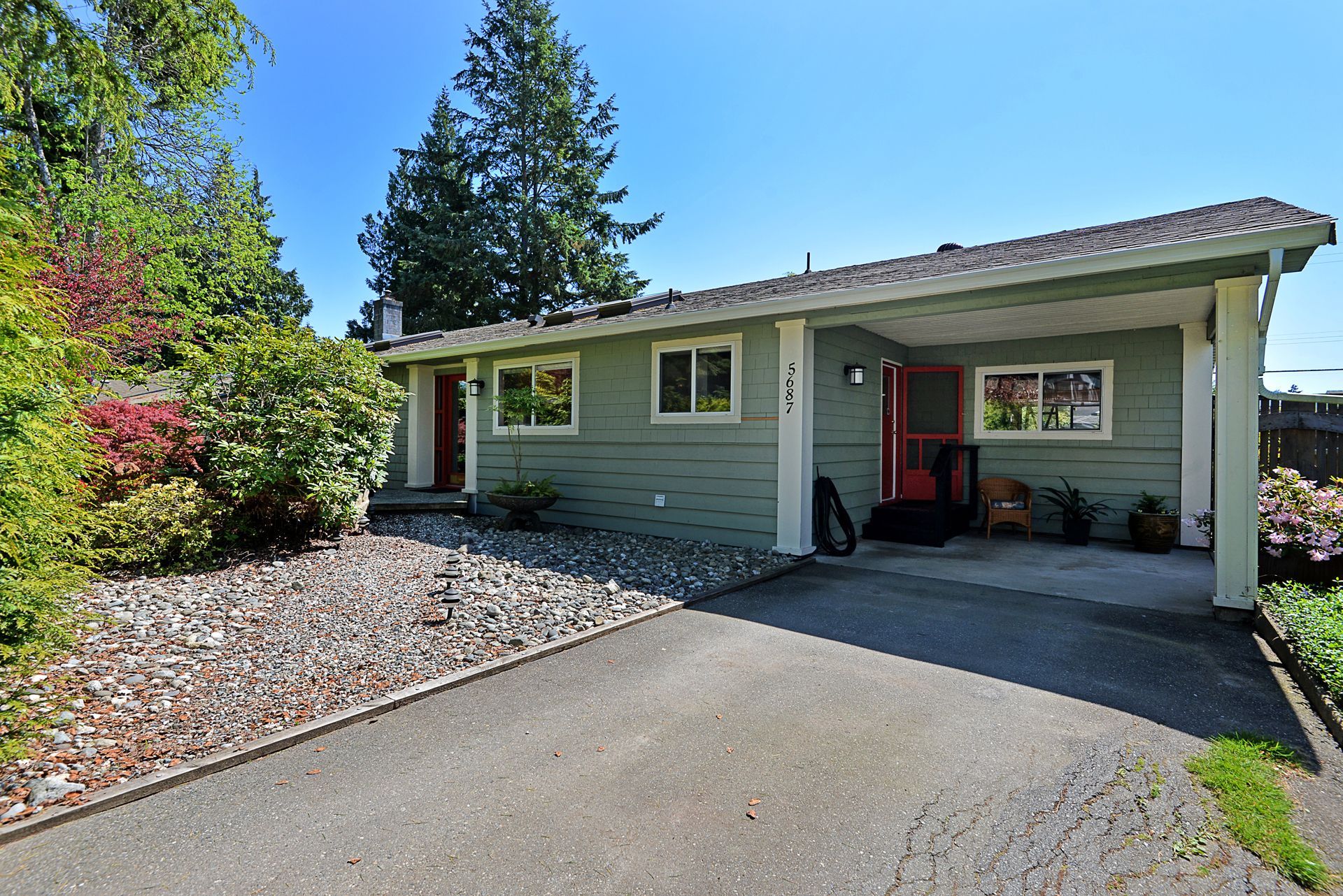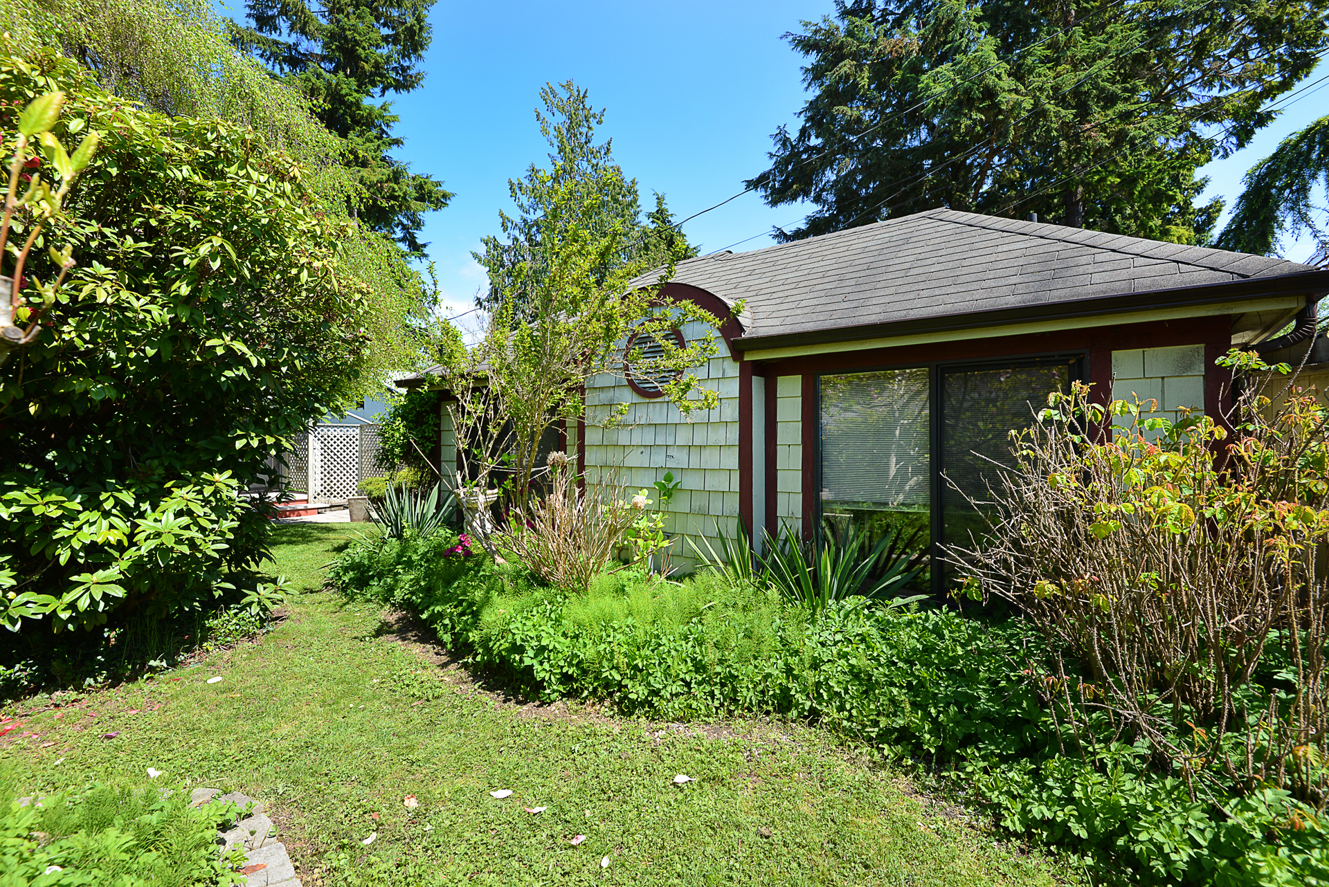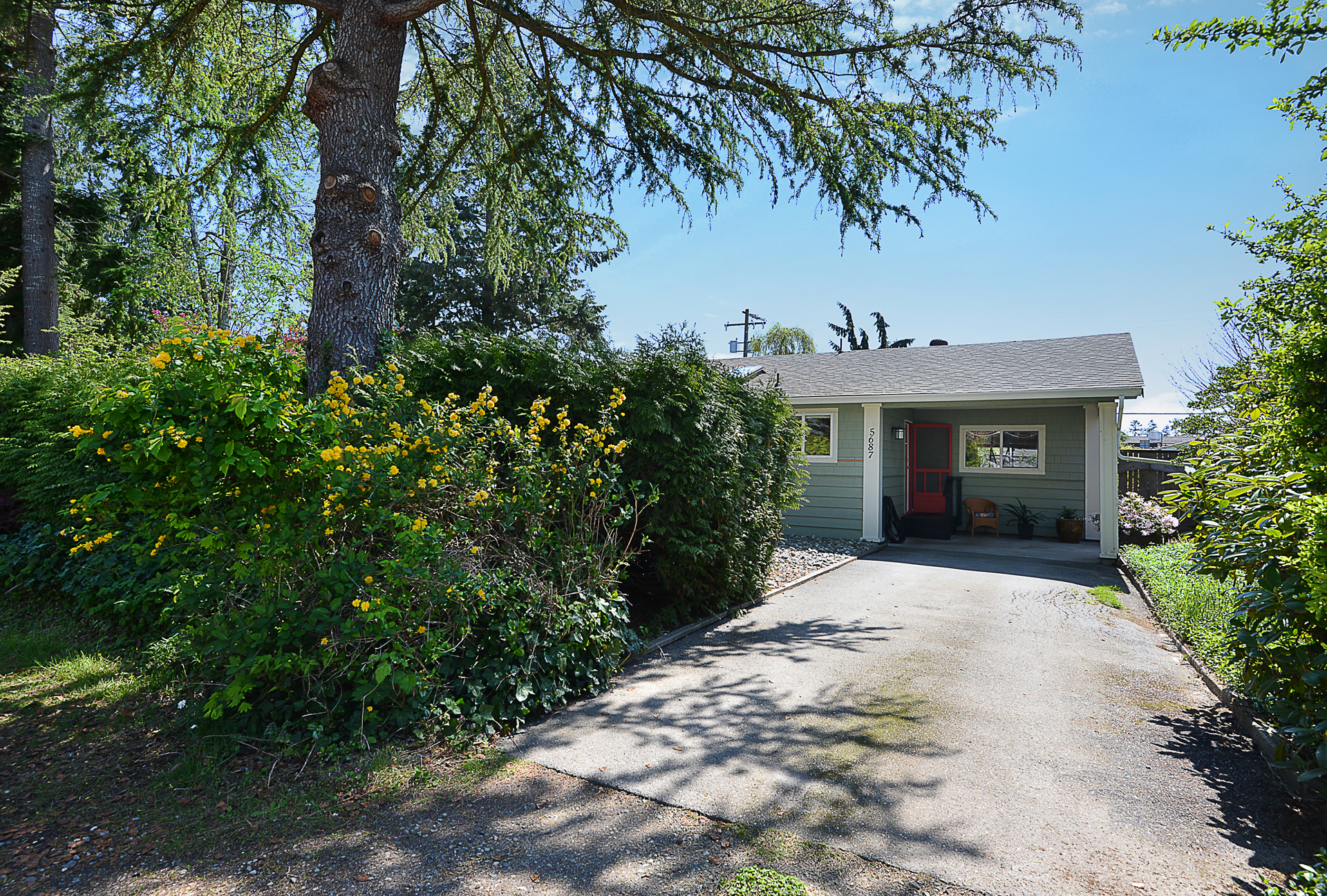 This 3 bed, 1.5 bath, 1,226 sq ft rancher is nestled just steps away from downtown Sechelt. Boasting a private, well-designed and generously sized backyard with automatic sprinklers. The southern exposure and mature landscaping is like having your own enchanting ‘Secret Garden’. A fresh and spacious feeling from the moment you walk in the front door with an open living concept. Updated and welcoming, with a bright kitchen and natural gas fireplace in the living room. There is plenty of storage in the separate laundry room and in the 12’x15’ attached workshop. Some updates include a 40-year roof in 2009 and most windows replaced with doubled pane in 2005. Separate studio/guesthouse in the backyard with bathroom, separate tub, kitchenette and heated by natural gas fireplace.