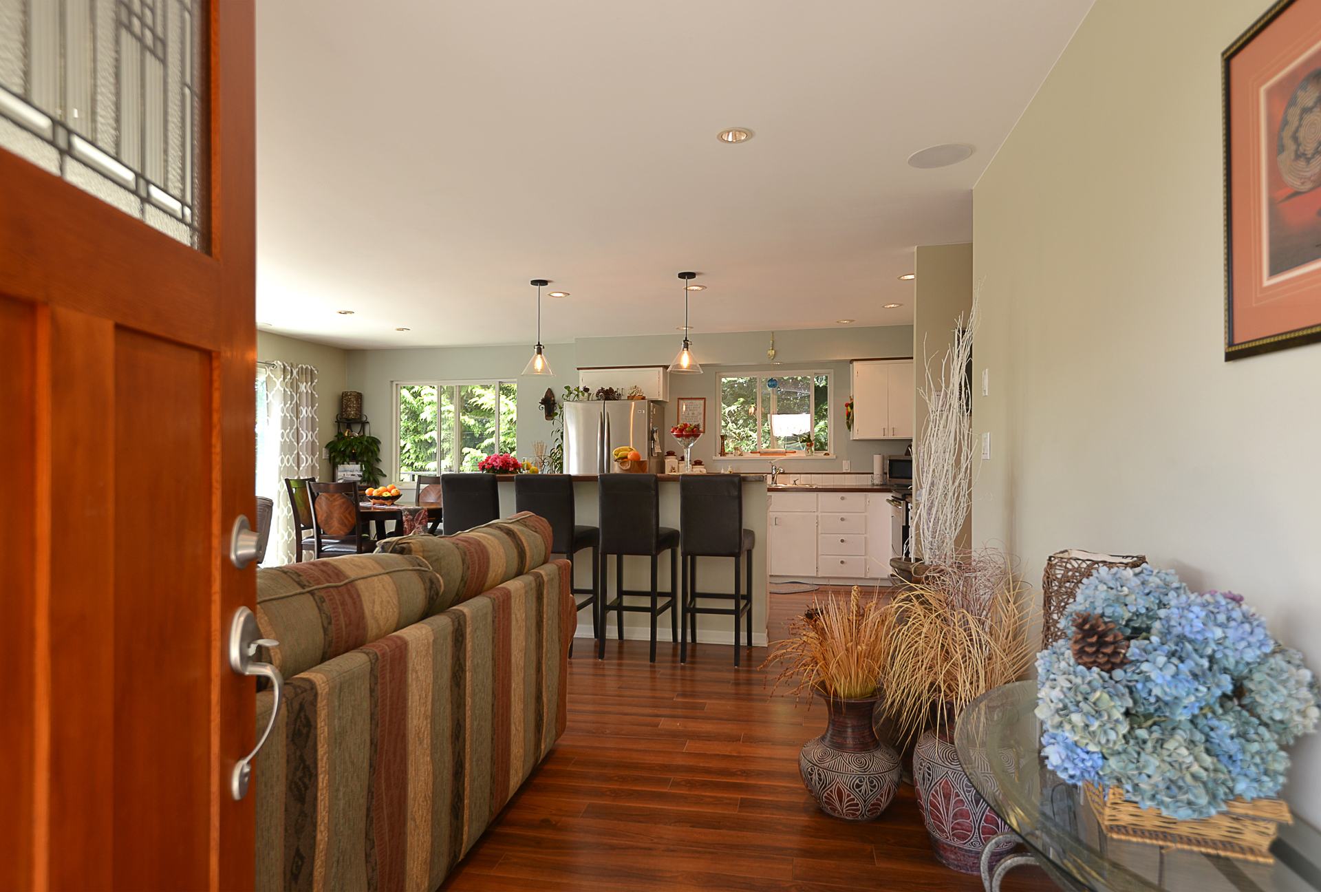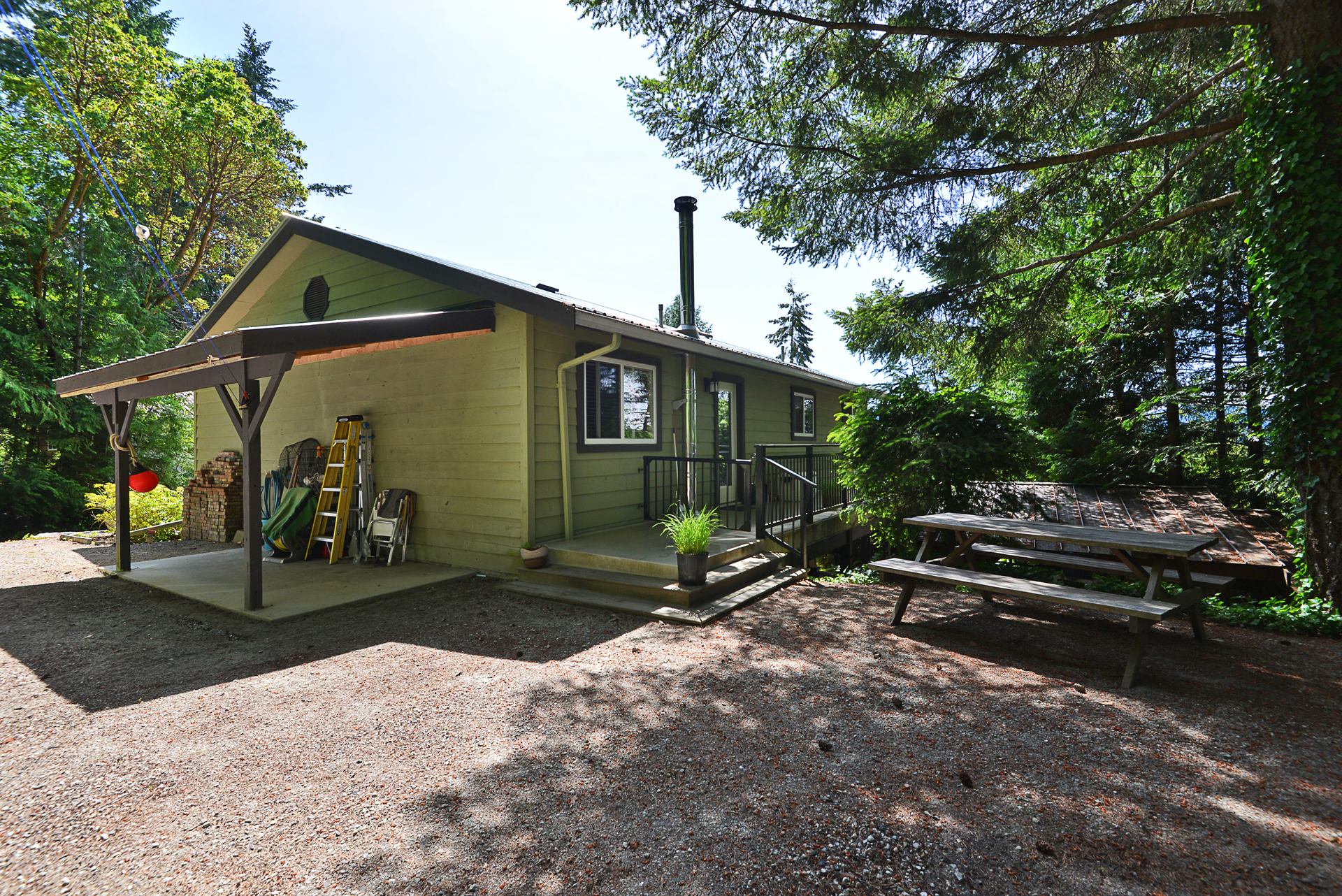 Immaculately kept, move-in ready 3 bed, 3 bath, 1,679 sq ft. This home is centrally located, within walking distance to the heart of Madeira Park. Well designed and mature landscaping invites you onto the property with driveway access and parking to both the front and rear of the home, including tandem double vehicle carport. Bright and sunny open concept living with well laid out kitchen, including an island and updated stainless steel appliances. Step out onto the sunny, southern exposure, wrap-around deck with remote controlled awning feature to enjoy the private park like setting. Downstairs living includes family room with woodstove, which heats the entire home, as well as bedroom, bathroom, workshop and access to the covered hot tub with gorgeous view of the landscaped yard.