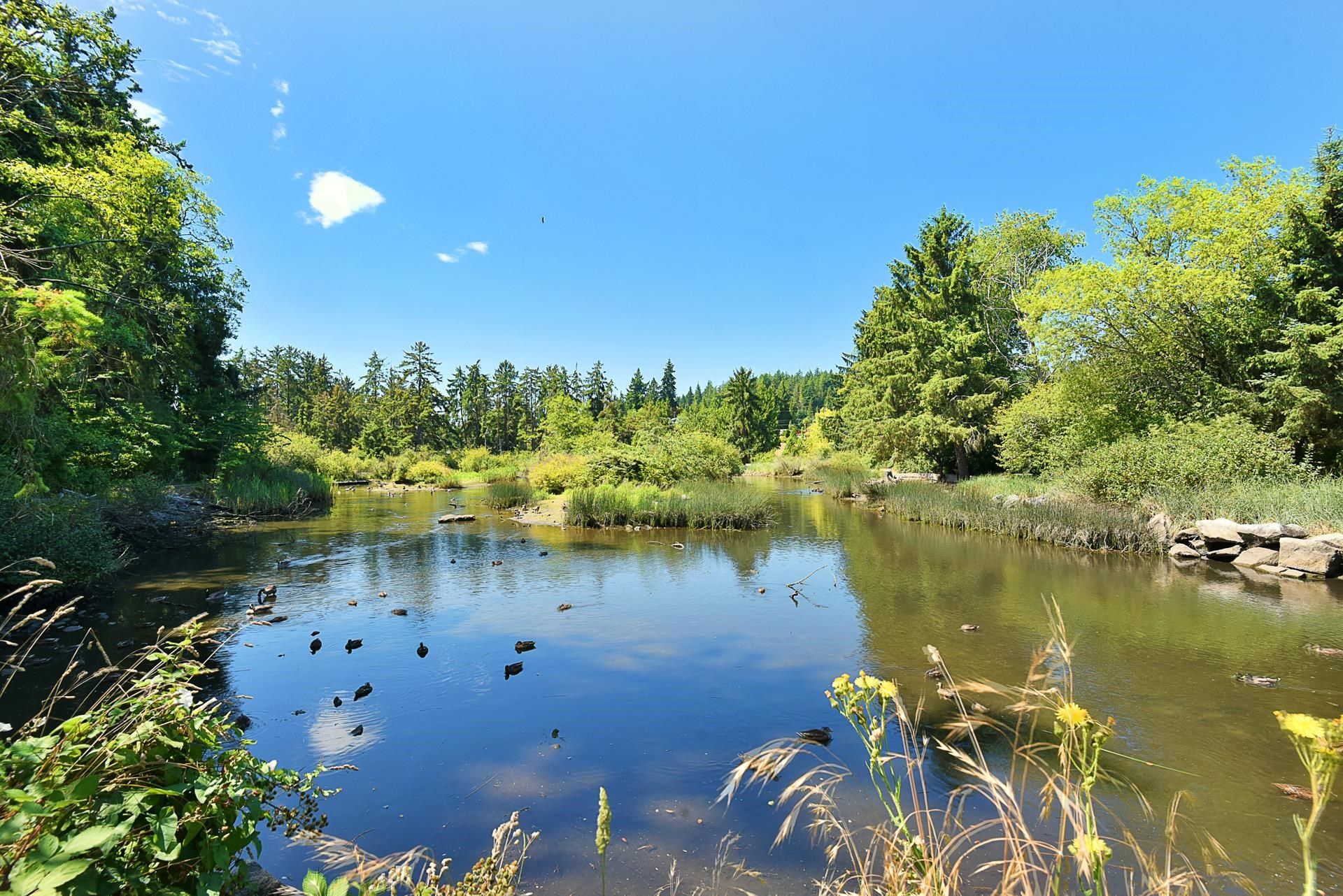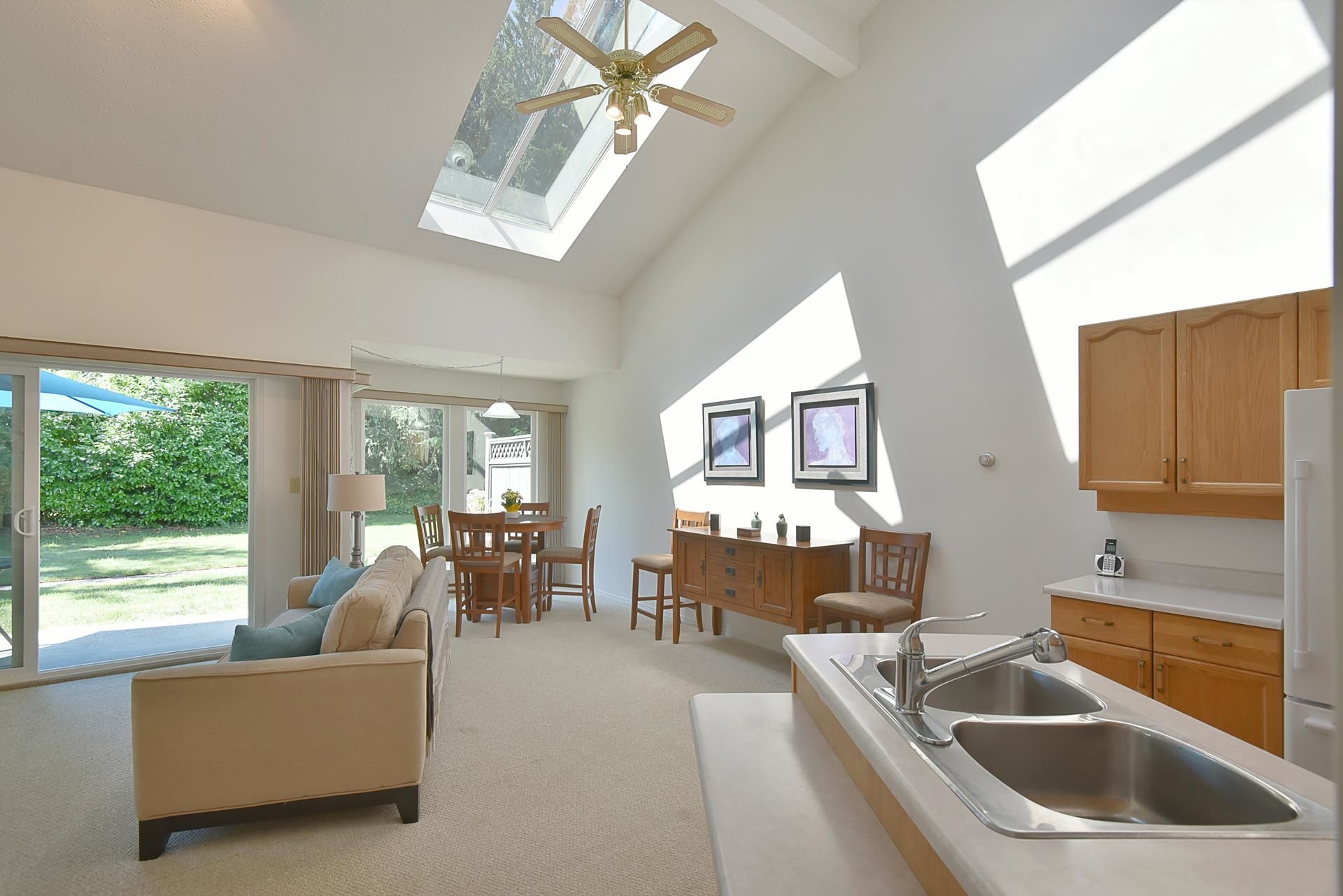 Backing onto a tranquil duck pond, this rare 2,062 sqft townhome blends nature, privacy with a spacious layout. The large south facing patio flows into a bright, open floor plan filled with natural light from vaulted ceilings, skylights and expansive windows. With four bedrooms including two on the main floor, two bathrooms, new kitchen appliances and a single car garage, this is a spacious, stylish and functional home. Just steps to kayak rentals, Porpoise Bay’s government wharf, restaurants, the seaplane launch and all of the amenities downtown.