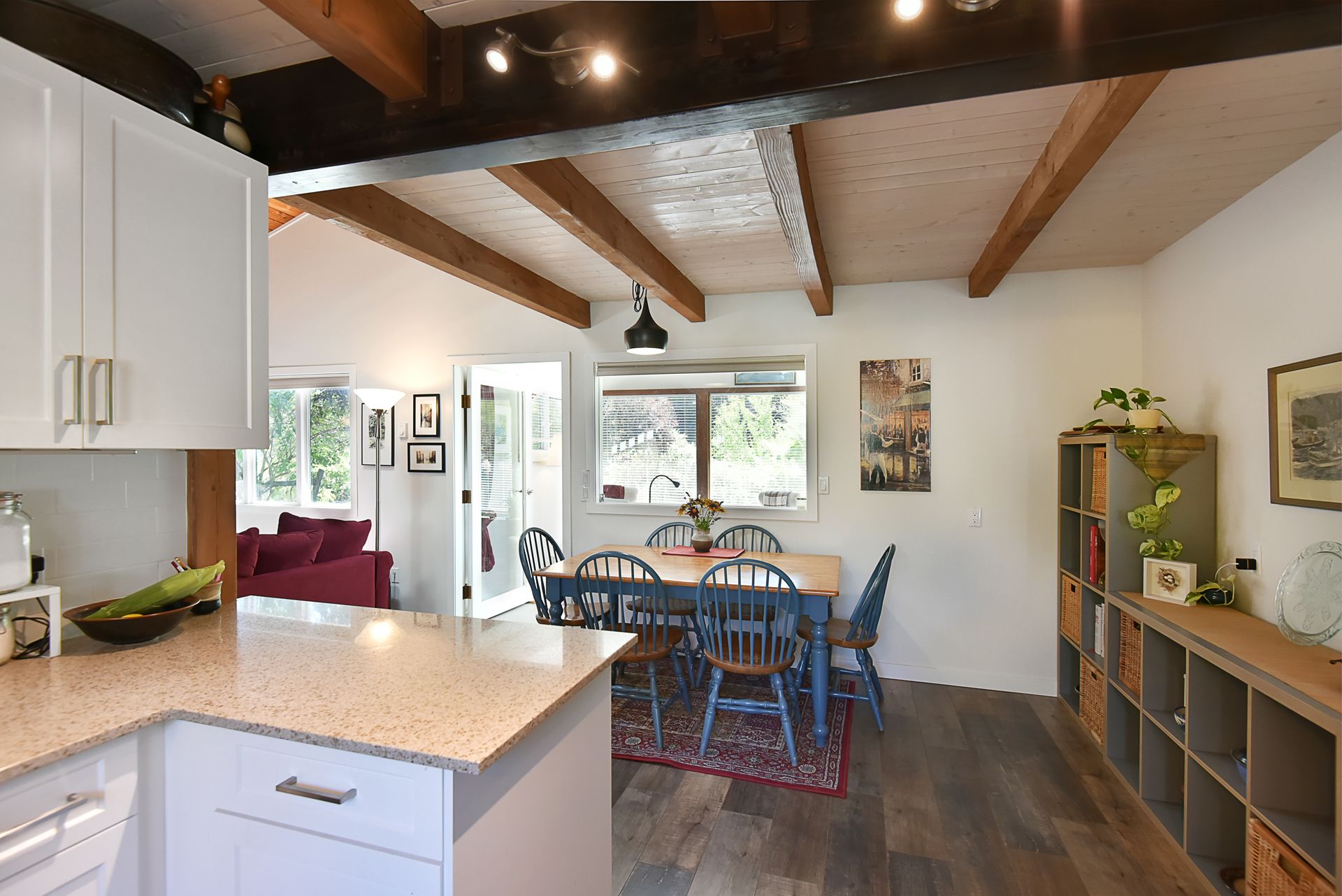 A charming, updated cottage situated on a corner lot in Downtown Sechelt with mature landscaping for maximum privacy. Spacious layout with the 1 1/2 storey design includes 2 bedrooms, 2 bathrooms, an open floor plan, vaulted ceiling in the living room and a loft. Beautiful kitchen with white shaker cabinets, quartz counter tops and stainless steel appliances. Great exposure, you can enjoy morning coffee in the front sunroom and evening sunsets in the backyard while enjoying a soak in the hot tub. The attached carport also includes a workshop with a two piece bathroom and a space for guests. Within easy walking distance to all the amenities downtown has to offer.